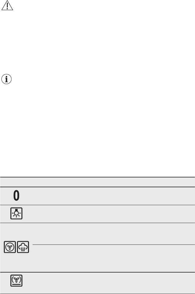 ovenfuncties en de knop voor de